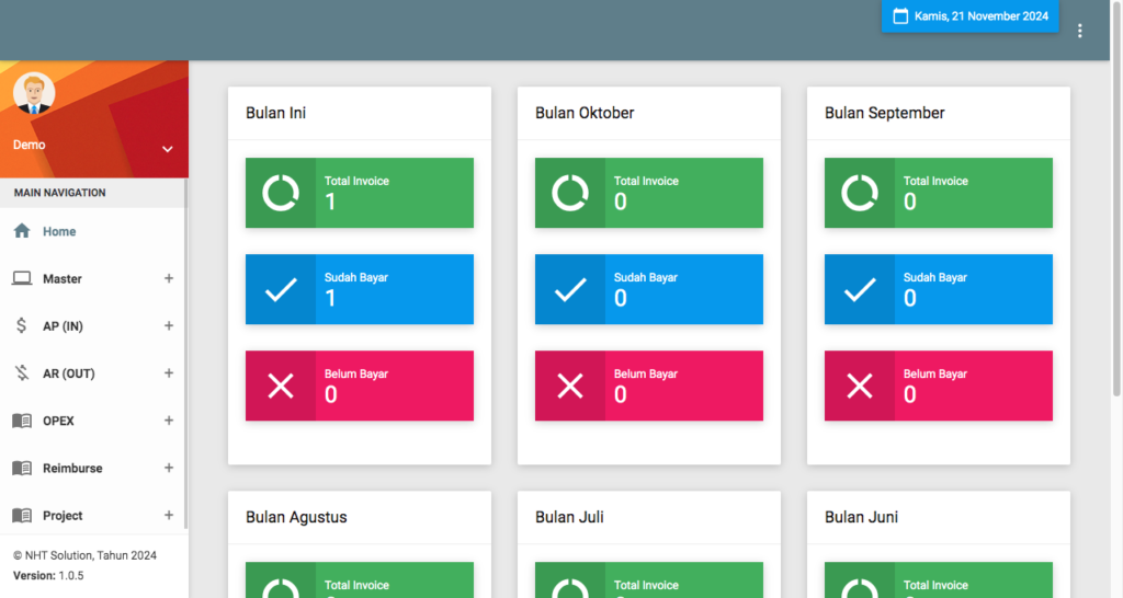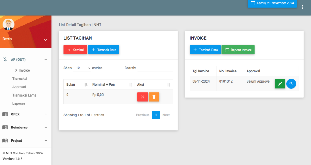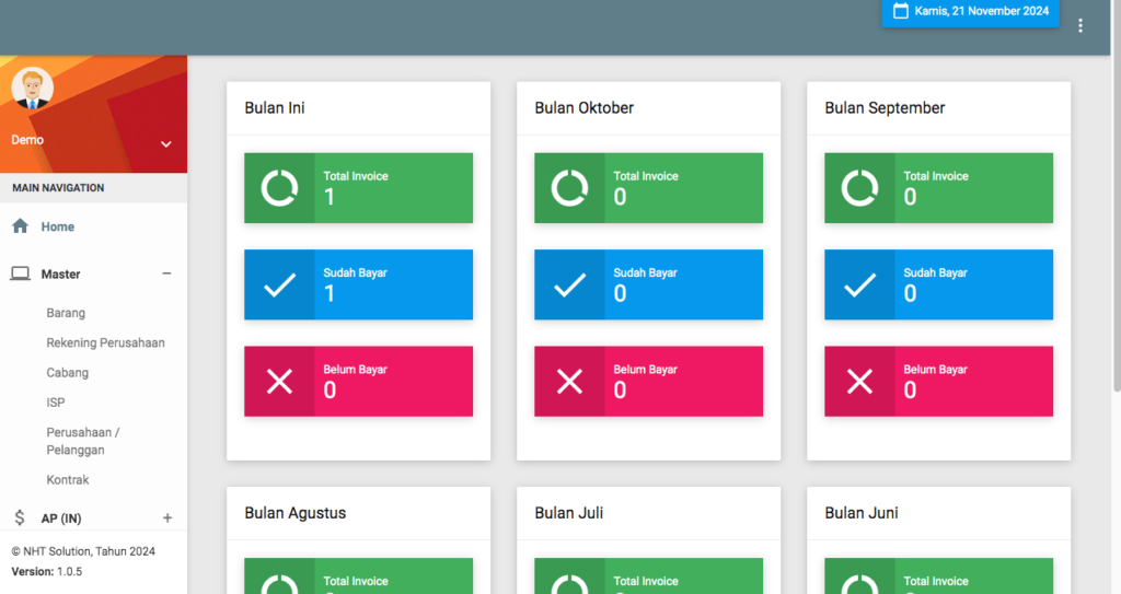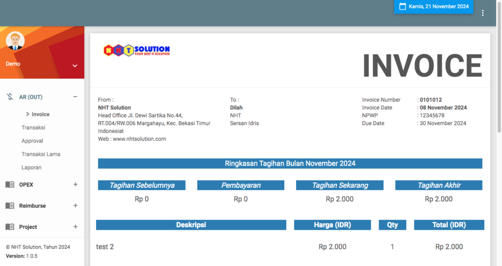 NHT Apps System – Aplikasi Billing System membantu anda dalam mengelola keuangan perusahaan berupa invoice, reburst, claim, project dan sebagainya.  Aplikasi ini memudahkan karyawan admin anda dalam mengelola sistem keuangan perusahaan.