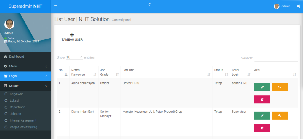 – URL aplikasi : https://admin-hr-apps.nht1.web.id/