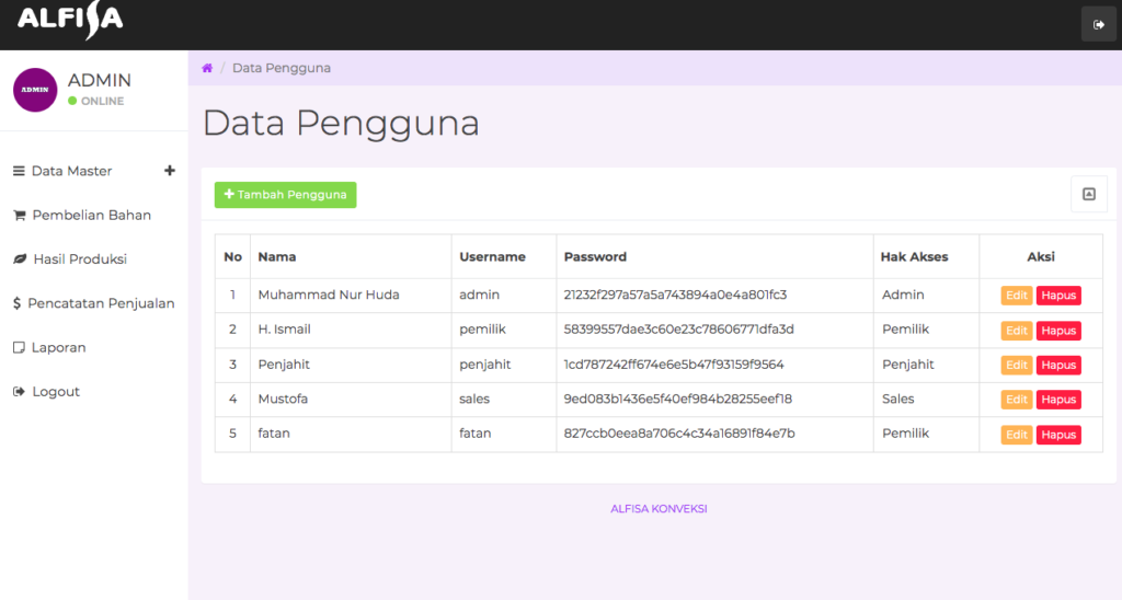 Password : penjahit
