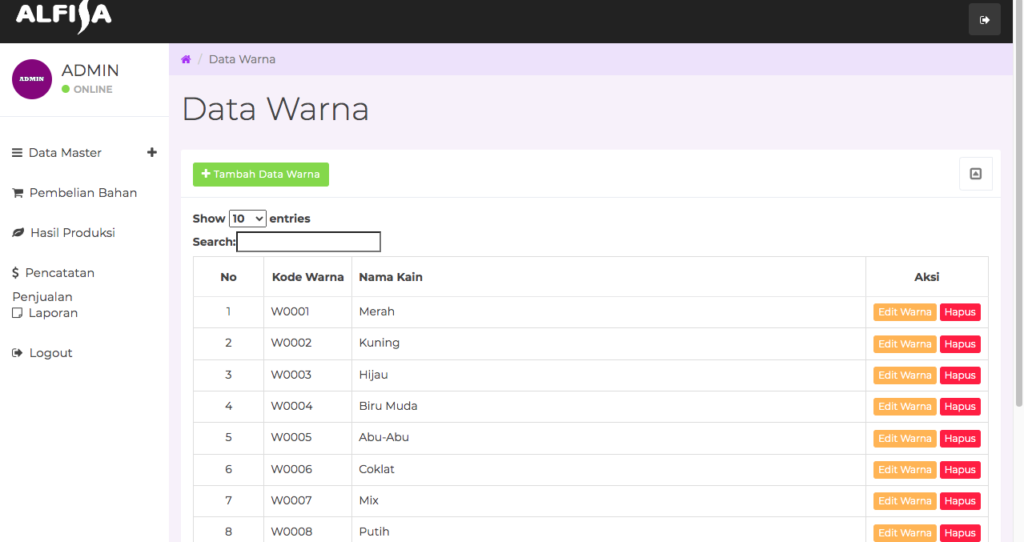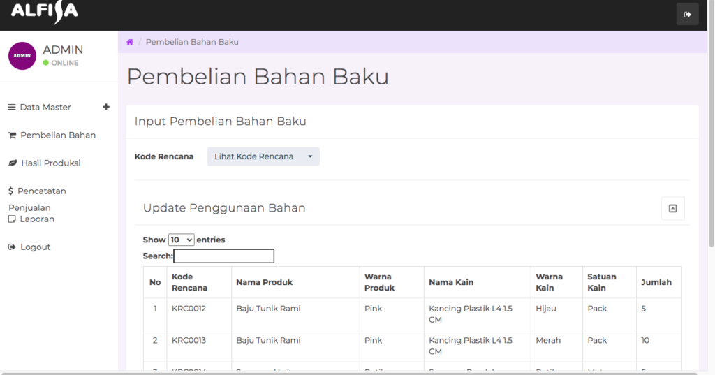 NHT Apps System – Sistem Aplikasi yang membantu anda dalam mengelola konveksi mulai dari data bahan, data warna, ukuran, pembelian bahan, produk dsb.